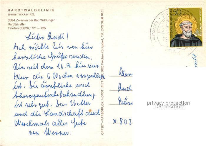 73107227 alte Postkarte Zwesten Bad Wildungen Hardtwaldklinik postalisch gelaufen Erhaltung siehe scans [KathaD81] KatCode: 11110006635003