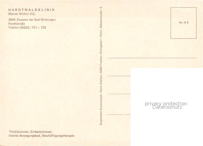 73087594 Zwesten Bad Wildungen Hardtwaldklinik postalisch nicht gelaufen Erhaltung siehe scans [KathaD81] KatCode: 11110006635003
