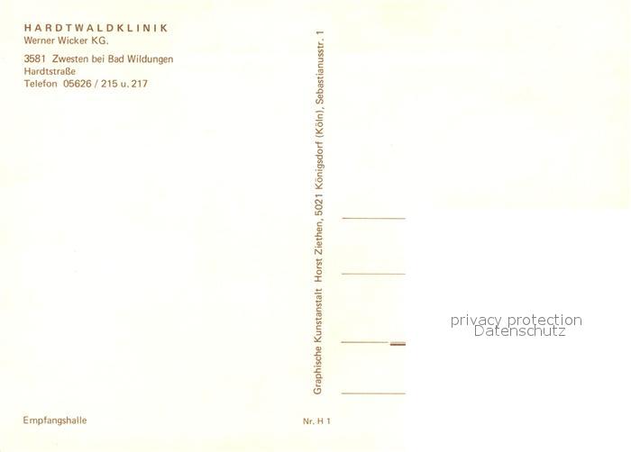 73087592 Zwesten Bad Wildungen Hardtwaldklinik postalisch nicht gelaufen Erhaltung siehe scans [KathaD81] KatCode: 11110006635003
