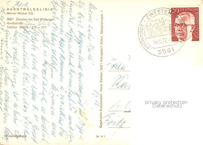 73086916 alte Postkarte Zwesten Bad Wildungen Hardtwaldklinik postalisch gelaufen Erhaltung siehe scans [KathaD81] KatCode: 11110006635003