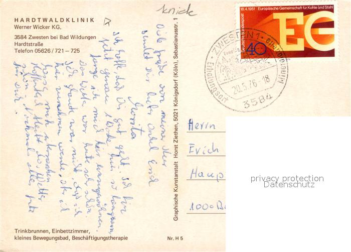 73101640 alte Postkarte Zwesten Bad Wildungen Hardtwaldklinik Loewensprudel Hallenbad Zimmer Malkurs postalisch gelaufen Erhaltung siehe scans [WerneD78] KatCode: 11110006635003