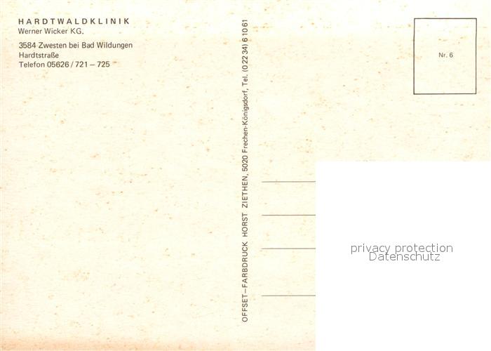 73017757 Zwesten Bad Wildungen Hartwaldklinik postalisch nicht gelaufen Erhaltung siehe scans [WerneD78] KatCode: 11110006635003