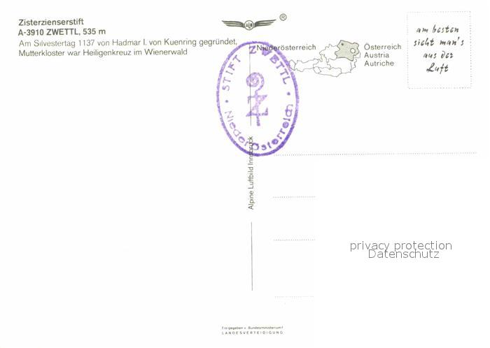 72812321 Zwettl-Niederoesterreich Zisterzienserstift Fliegeraufnahme postalisch nicht gelaufen Erhaltung siehe scans [NatalD47] KatCode: 11390124032530