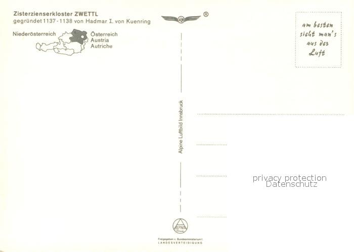 73231724 Zwettl Rodl Fliegeraufnahme Zisterzienserkloster Zwettl postalisch nicht gelaufen Erhaltung siehe scans [LiesaD40] KatCode: 11390313041627