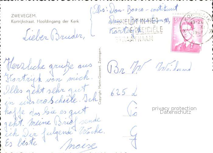 12046313 carte postale Zwevegem Kortrijkstraat Hoofdingang der Kerk postalisch gelaufen Erhaltung siehe scans KatCode: 11070034000714