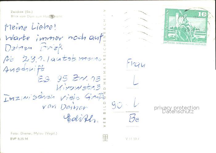 72250790 alte Postkarte Zwickau Sachsen Blick vom Dom zum Hauptmarkt postalisch gelaufen Erhaltung siehe scans KatCode: 11110014167000