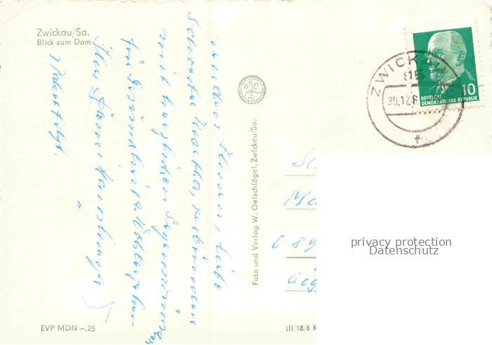 74153533 alte Postkarte ZWICKAU Sachsen Blick zum Dom Weihnachts- und Neujahrskarte postalisch gelaufen Erhaltung siehe scans [FriedD77] KatCode: 11110014167000