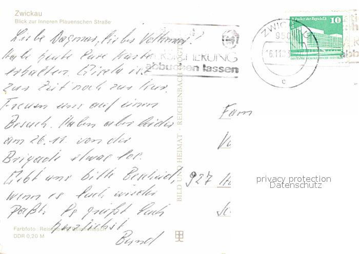 72650904 alte Postkarte Zwickau Sachsen Blick zur Inneren Plauenschen Strasse postalisch gelaufen Erhaltung siehe scans [FriedD77] KatCode: 11110014167000