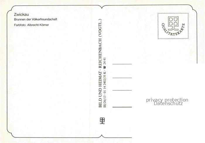 74152318 ZWICKAU Sachsen Brunnen der Voelkerfreundschaft postalisch nicht gelaufen Erhaltung siehe scans [FriedD77] KatCode: 11110014167000