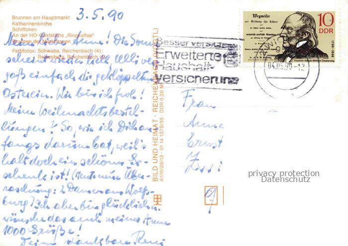 74152358 alte Postkarte ZWICKAU Sachsen Brunnen Hauptmarkt Katharinenkirche Schiffchen HO Gaststaette Ringkaffee Brunnen der Marktfrauen postalisch gelaufen Erhaltung siehe scans [FriedD77] KatCode: 11110014167000