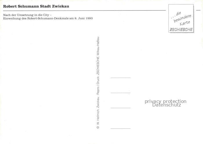 74152408 ZWICKAU Sachsen Einweihung des Robert-Schumann-Denkmals am 8. Juni 1993 postalisch nicht gelaufen Erhaltung siehe scans [FriedD77] KatCode: 11110014167000