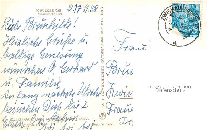 72698520 alte Postkarte Zwickau Sachsen Gewandhaus postalisch gelaufen Erhaltung siehe scans [LiesaD40] KatCode: 11110014167000