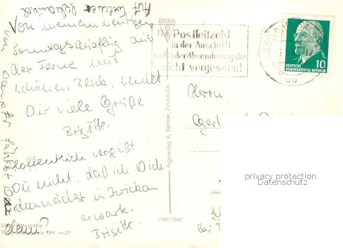73045303 alte Postkarte Zwickau Sachsen Hauptbahnhof Bergingenieurschule Schwanenschloss Muldenbruecke Dom Robert Schumann Denkmal George Dimitroff Stadion Plauensche Strasse postalisch gelaufen Erhaltung siehe scans [WerneD78] KatCode: 11110014167000