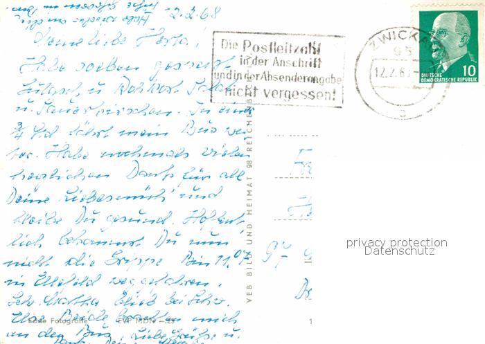 72727428 alte Postkarte Zwickau Sachsen Hauptbahnhof Freilichtbuehne Ingenieurschule HOG Ringcafe Hauptmarkt postalisch gelaufen Erhaltung siehe scans [FriedD77] KatCode: 11110014167000