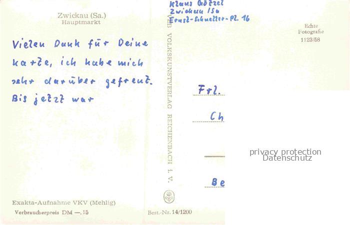 74152138 ZWICKAU Sachsen Hauptmarkt Kirchturm postalisch nicht gelaufen Erhaltung siehe scans [FriedD77] KatCode: 11110014167000