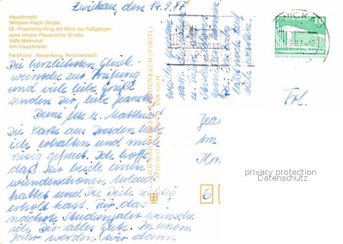 72631641 alte Postkarte Zwickau Sachsen Hauptmarkt Plauensche-Strasse postalisch gelaufen Erhaltung siehe scans [LiesaD40] KatCode: 11110014167000