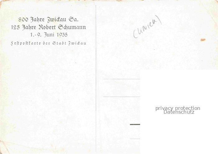 74152378 ZWICKAU Sachsen Hauptmarkt um 1850 Kuenstlerkarte 800 Jahre Jubilaeum 125 Jahre Robert Schumann Feldpost postalisch nicht gelaufen Erhaltung siehe scans [FriedD77] KatCode: 11110014167000