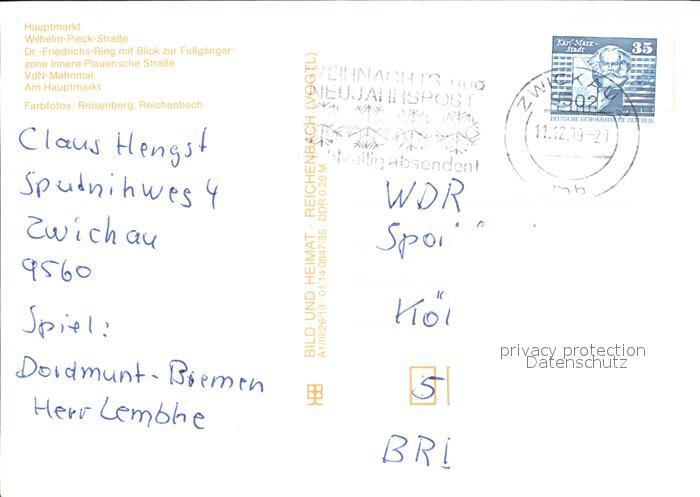 72415302 alte Postkarte Zwickau Sachsen Hauptmarkt Wilhelm Pieck Strasse VDN Mahnmal postalisch gelaufen Erhaltung siehe scans KatCode: 11110014167000