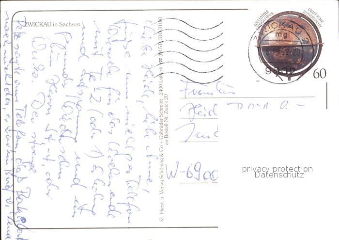 72374220 alte Postkarte Zwickau Sachsen Historische Stadt an der Mulde Innenstadt Rathaus Gewandhaus Bruecke Wappen postalisch gelaufen Erhaltung siehe scans KatCode: 11110014167000