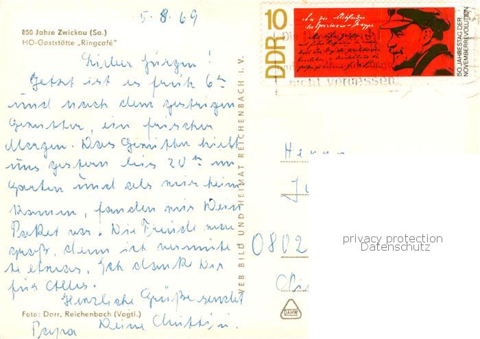 73801754 alte Postkarte Zwickau Sachsen HO Gaststaette Ringcafe postalisch gelaufen Erhaltung siehe scans [WerneD78] KatCode: 11110014167000