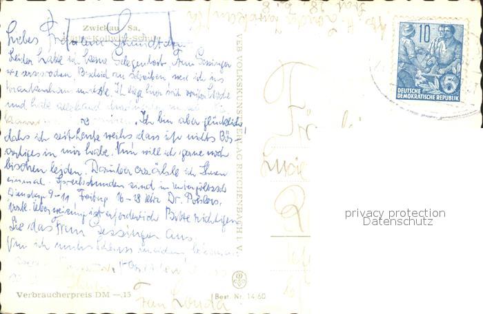 72355077 alte Postkarte Zwickau Sachsen Kaethe-Kolwitz-Schule postalisch gelaufen Bahnpost Erhaltung siehe scans KatCode: 11110014167000