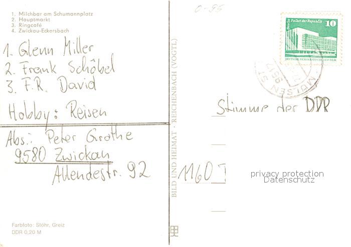 Zwickau Sachsen Milchbar Hauptmarkt Ringcafe Eckersbach
