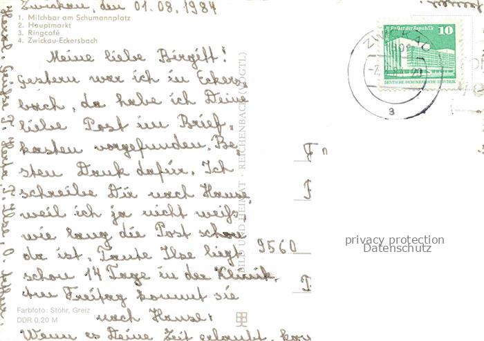 74152645 alte Postkarte ZWICKAU Sachsen Milchbar Schumannplatz Hauptmarkt Ringcafé Zwickau-Eckersbach postalisch gelaufen Erhaltung siehe scans [FriedD77] KatCode: 11110014167000