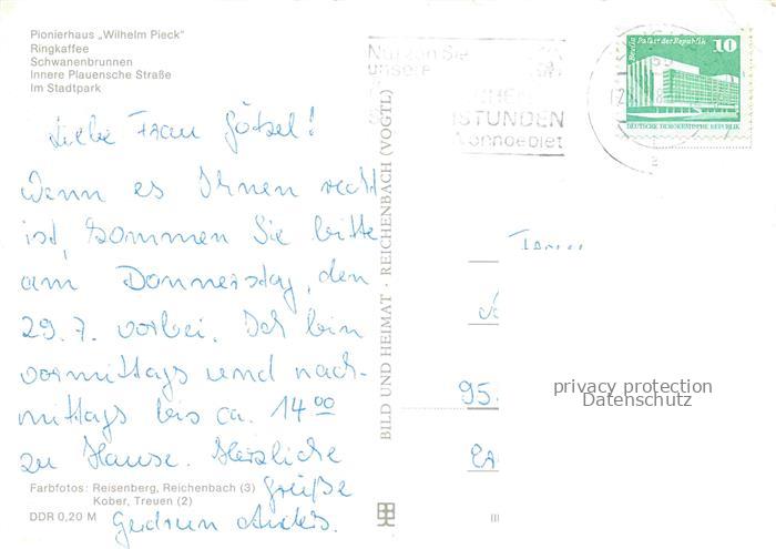 74152634 alte Postkarte ZWICKAU Sachsen Pionierhaus Wilhelm Pieck Ringkaffee Schwanenbrunnen Innere Plauensche Strasse Stadtpark postalisch gelaufen Erhaltung siehe scans [FriedD77] KatCode: 11110014167000