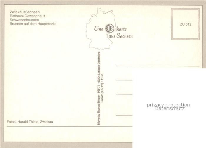 73204742 Zwickau Sachsen Rathaus Gewandhaus Brunnen Hauptmarkt postalisch nicht gelaufen Erhaltung siehe scans [PaolaD17] KatCode: 11110014167000