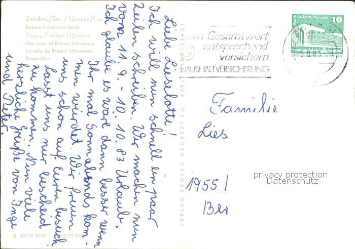 72001902 alte Postkarte Zwickau Sachsen Ringkaffee postalisch gelaufen KatCode: 11110014167000