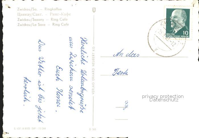 71998801 alte Postkarte Zwickau Sachsen Ringkaffee postalisch gelaufen Erhaltung siehe scans KatCode: 11110014167000