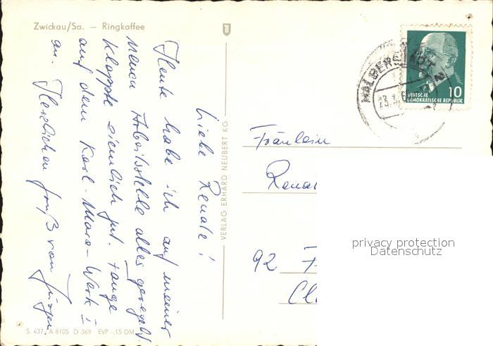 72496317 alte Postkarte Zwickau Sachsen Ringkaffee postalisch gelaufen Erhaltung siehe scans KatCode: 11110014167000