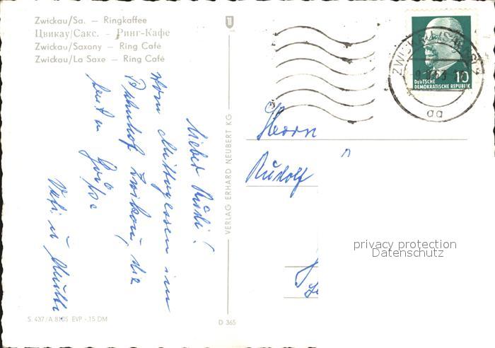 72415405 alte Postkarte Zwickau Sachsen Ringkaffee postalisch gelaufen Erhaltung siehe scans KatCode: 11110014167000