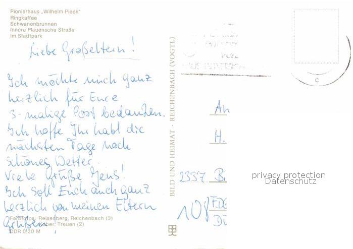 72654984 alte Postkarte Zwickau Sachsen Ringkaffee Schwanenbrunnen Plauensche-Strasse Stadtpark postalisch gelaufen Erhaltung siehe scans [LiesaD40] KatCode: 11110014167000