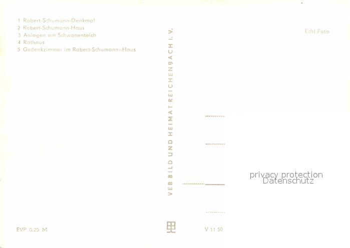 72633858 Zwickau Sachsen Robert Schumann Haus Gedenkzimmer Denkmal Anlagen Schwanenteich Rathaus postalisch nicht gelaufen Erhaltung siehe scans [FriedD77] KatCode: 11110014167000