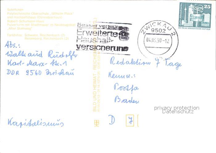 72461616 alte Postkarte Zwickau Sachsen Schiffchen Polytechnische Oberschule Wilhelm Pieck Hochzeitshaus postalisch gelaufen Erhaltung siehe scans KatCode: 11110014167000