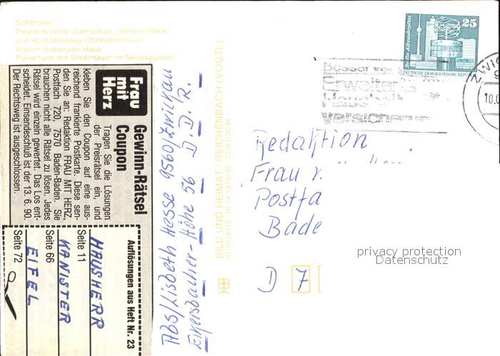alte Postkarte Zwickau Sachsen Schiffchen Robert Schumann Haus Pulverturm postalisch gelaufen Erhaltung siehe scans