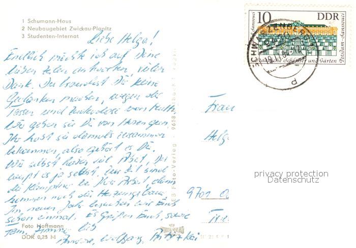 73567186 alte Postkarte Zwickau Sachsen Schumann Haus Denkmal Neubaugebiet Planitz Studenteninternat postalisch gelaufen Erhaltung siehe scans [FriedD77] KatCode: 11110014167000
