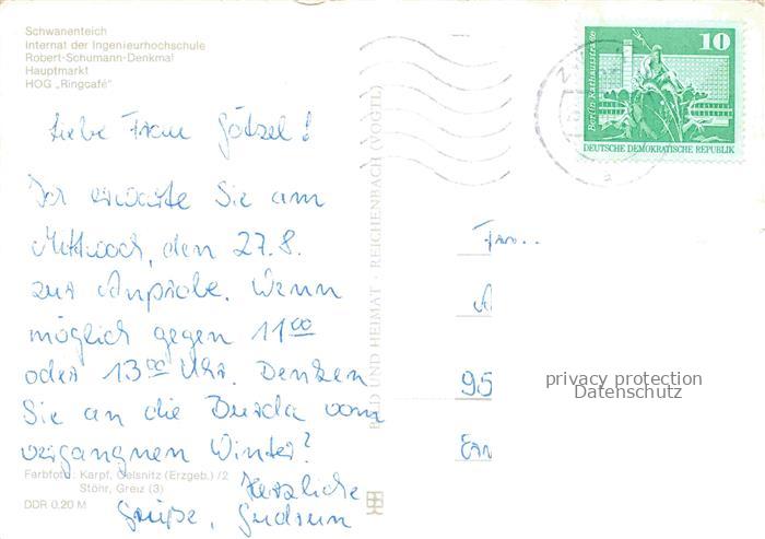 74152633 alte Postkarte ZWICKAU Sachsen Schwanenteich Internat Ingenieurhochschule Robert-Schumann-Denkmal Hauptmarkt HOG Ringcafé postalisch gelaufen Erhaltung siehe scans [FriedD77] KatCode: 11110014167000