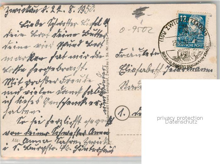 43496112 alte Postkarte Zwickau Sachsen Stadtblick postalisch gelaufen Erhaltung siehe scans [WerneD78] KatCode: 11110014167000