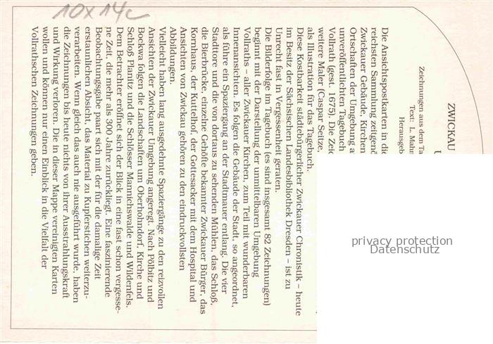 74153030 ZWICKAU Sachsen und Umgebung um 1670 Zeichnung aus Tagebuch des Jeremias Vollrath postalisch nicht gelaufen Sammelbild (keine Postkarte) Erhaltung siehe scans [FriedD77] KatCode: 11110014167000