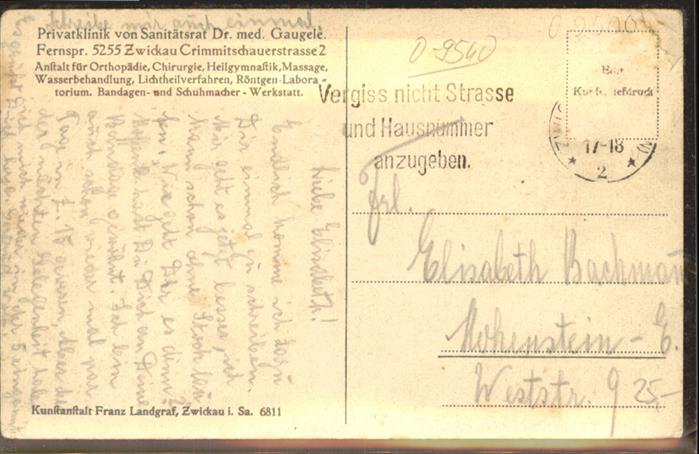 40907824 Zwickau Sachsen Zwickau Privatklinik Dr Gaugele KatCode 11110014167000