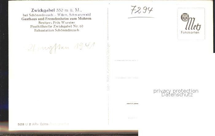 41801501 Zwickgabel Gasthaus zum Mohren postalisch nicht gelaufen Erhaltung siehe scans KatCode: 11110008237004