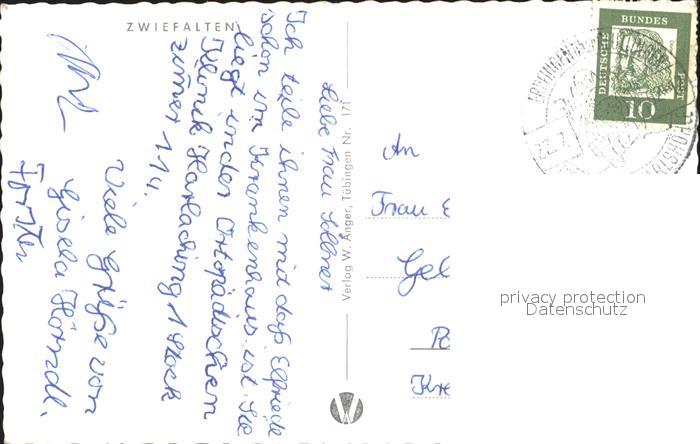 71838763 alte Postkarte Zwiefalten Benediktiner Kloster postalisch gelaufen Erhaltung siehe scans KatCode: 11110008415085