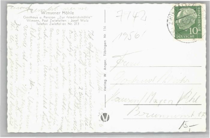 40735112 Zwiefalten Wimsen Gasthaus Pension zur Friedrichshöhle KatCode 11110008415085
