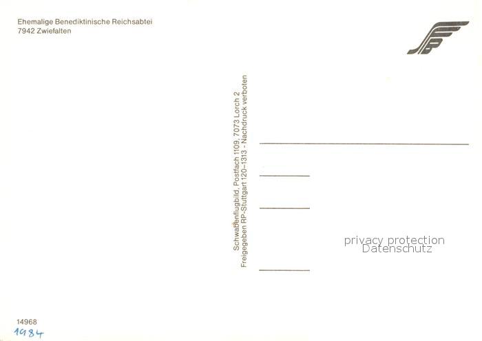 73541029 Zwiefalten Wuerttemberg Ehem Benediktinische Reichsabtei Fliegeraufnahme postalisch nicht gelaufen Erhaltung siehe scans [WerneD78] KatCode: 11110008415085