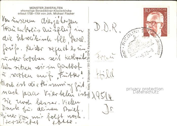 alte Postkarte Zwiefalten Wuerttemberg Muenster Benediktiner Klosterkirche postalisch gelaufen Erhaltung siehe scans