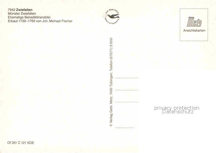 72723068 Zwiefalten Wuerttemberg Muenster ehem. Benediktinerabtei Erbauer Joh. Michael Fischer 18. Jhdt. Barock postalisch nicht gelaufen Erhaltung siehe scans [FriedD77] KatCode: 11110008415085