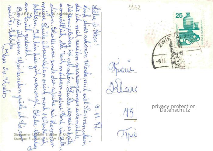 74052602 alte Postkarte Zwiefalten Wuerttemberg Muenster ehemalige Benediktiner-Klosterkirche 18. Jhdt. postalisch gelaufen Fliegeraufnahme Erhaltung siehe scans [FriedD77] KatCode: 11110008415085