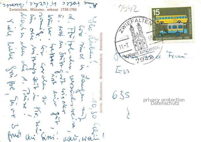 74041147 alte Postkarte Zwiefalten Wuerttemberg Panorama Blick auf Muenster Unserer Lieben Frau postalisch gelaufen Erhaltung siehe scans [FriedD77] KatCode: 11110008415085